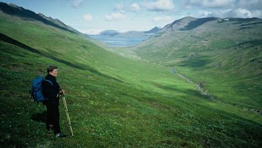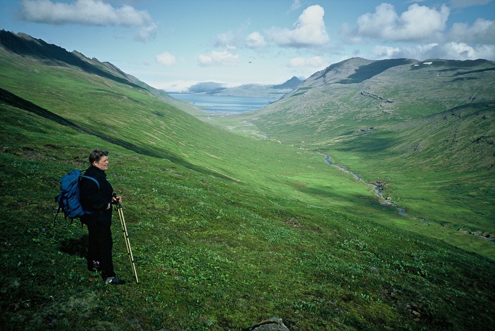 Grænafell frá brekkum undir Vegaskarði. Innst í fjallinu er Rauðitindur. Lengst til vinstri eru Hrafnaskörð og Glámsaugnatindur. Byggðin Hellisfjörður Fimm býli voru í Hellisfirði á 20. öld...