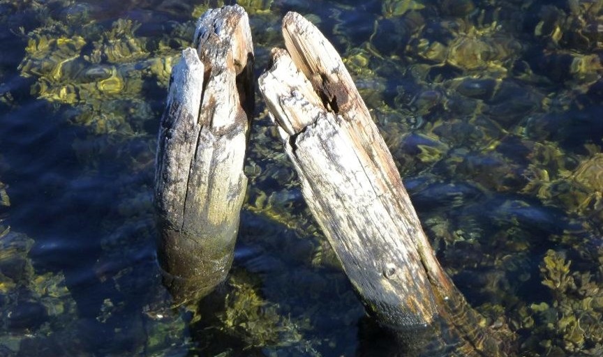 Árið 1966 strandaði síldarskipið Gesina frá Kopervik í Noregi á miðjum sandi í Sandvík. Tólf manna skipshöfn bjargaðist öll. Gesina strandaði 1966. Þessi mynd er frá 2003 þar sem sandurinn er á góðri...