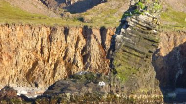 Í Mónessfjöru á leið að Grenissandi. Ljósm. Hallfríður Ingimundardóttir Utan við Mónesfjörur tekur Grenisandur við. Utan við hann er klettanef sem gengur út í sjó og heitir Marteinsbrík. Klifur niður...